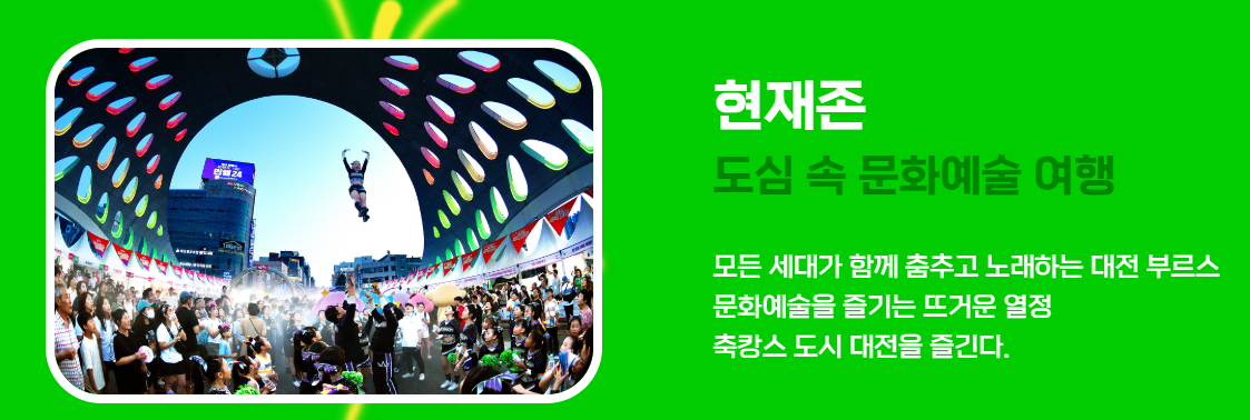 시민과 관광객 모두가 즐길 수 있는 도시 브랜드 팝업스토어형 축제로, 대전의 매력을 한껏 느낄 수 있습니다.